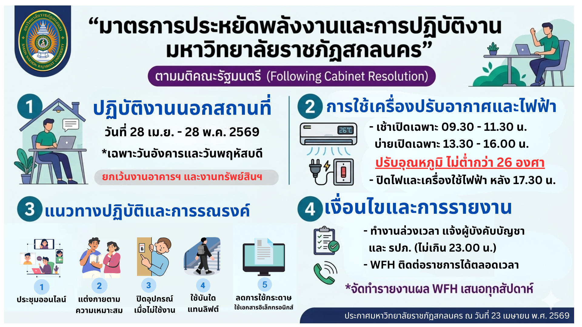 โดยได้รับเกียรติจาก ผู้ช่วยศาสตราจารย์ชาคริต ชาญชิตปรีชา อธิการบดีมหาวิทยาลัยราชภัฏสกลนคร เป็นประธานในการมอบนโยบายแนวทางในการทำงานและการจัดทำสัญญาจ้าง ณ ห้องประชุมสร้อยสุวรรณา ชั้น 3 อาคาร 10 มหาวิทยาลัยราชภัฏสกลนคร